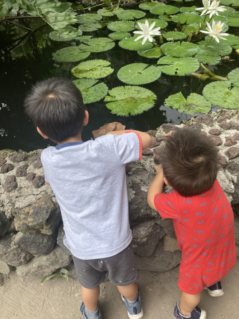 Además, hay una bonita área de juegos para niños. La entrada es económica y también puedes comprar una bolsita de comida para peces por solo $0.60 en la entrada. Dar de comer a los animales es la parte favorita de mis hijos, y muchas veces prefieren quedarse observando a los animales en lugar de ir al playground.