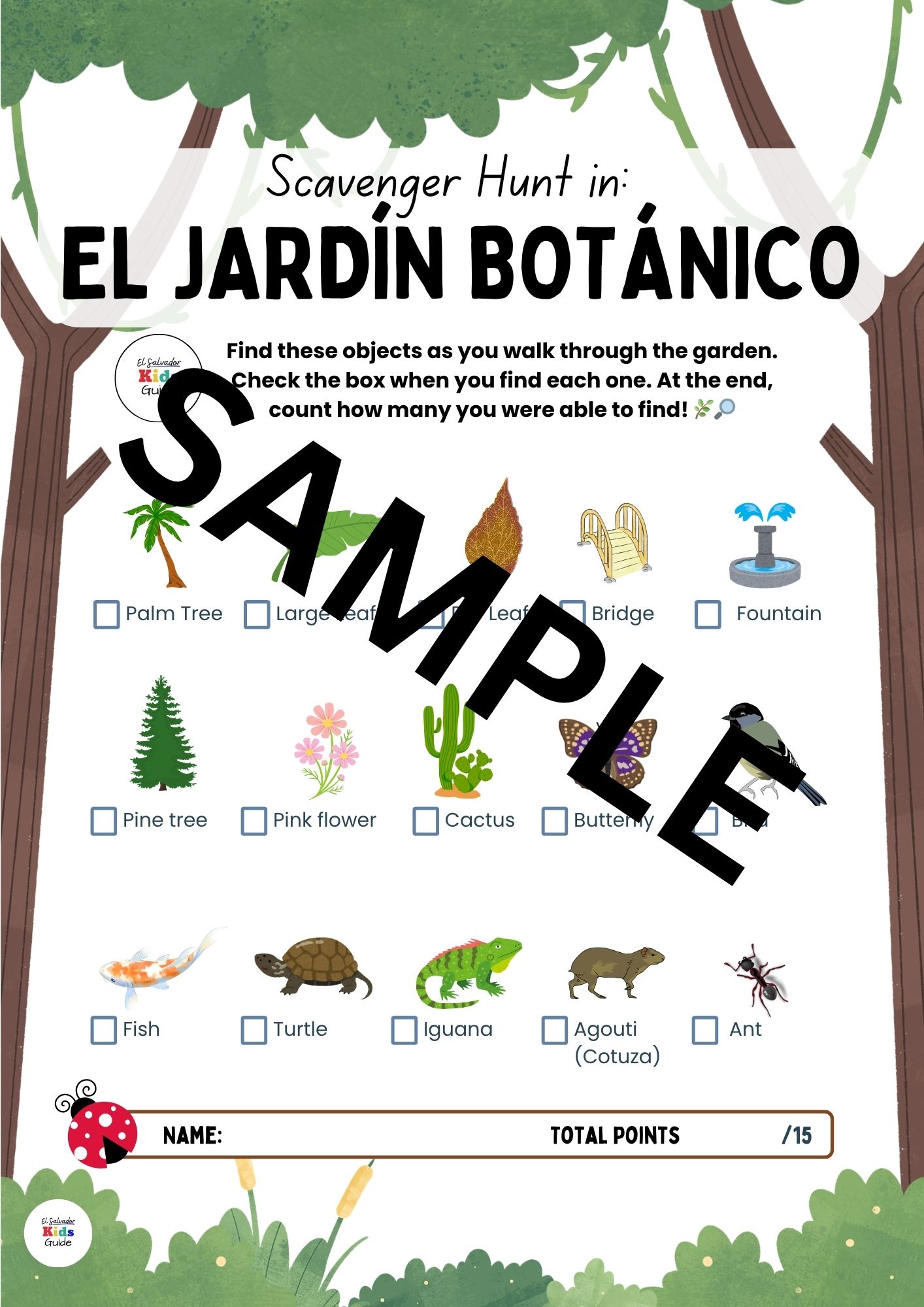 Haz que tu visita sea aún más divertida con nuestra búsqueda del tesoro imprimible GRATIS. Diseñada especialmente para niños, esta actividad convierte el paseo por el jardín en una aventura temática de exploradores de la selva.